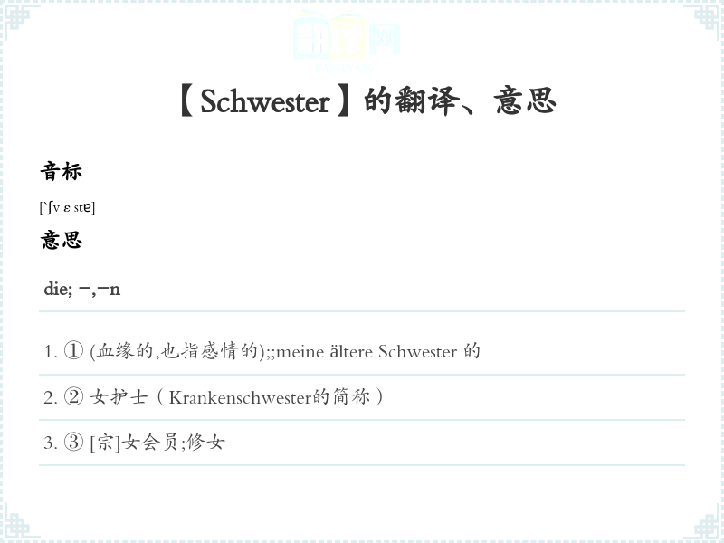 【Schwester】是什么意思、字义解释