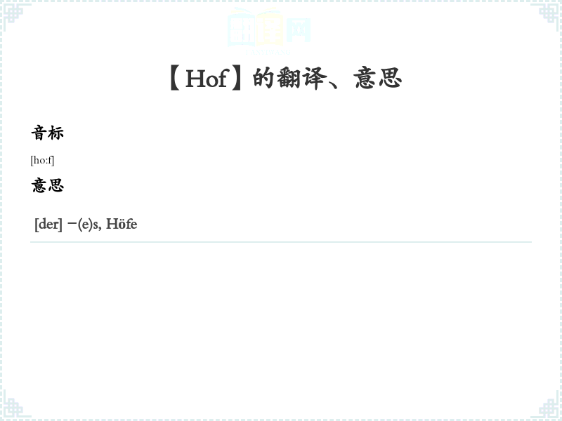 【Hof】是什么意思、字义解释
