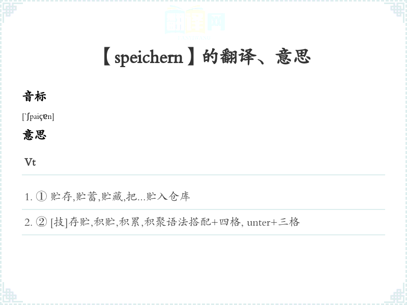 【speichern】是什么意思、字义解释