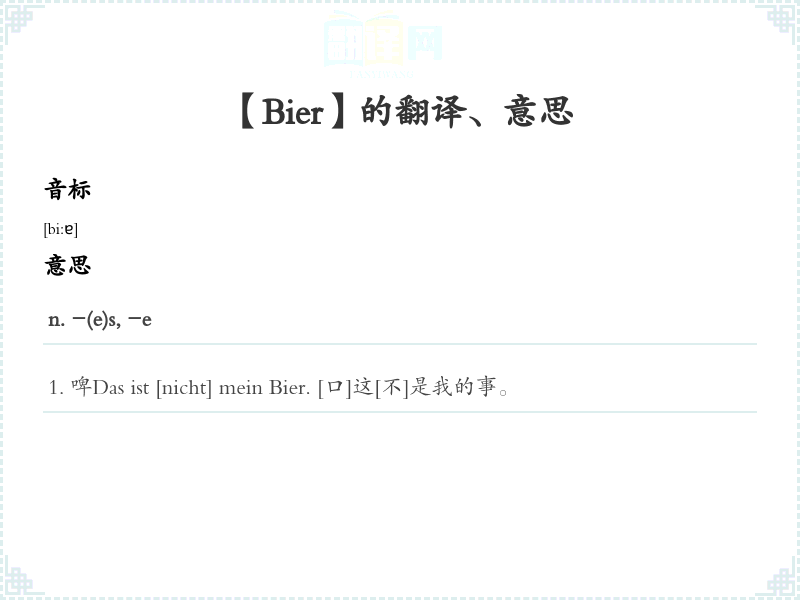 啤Das ist [nicht] mein Bier. [口]这[不]是我的事。