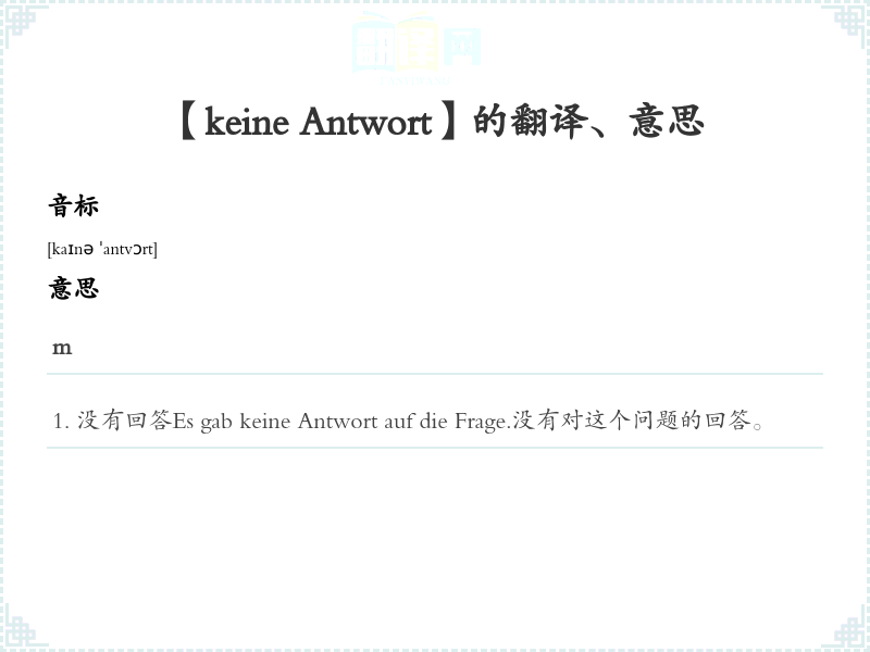 【keine Antwort】是什么意思、字义解释