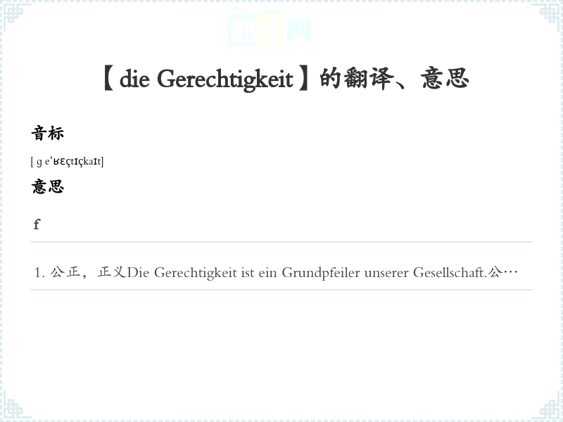 【die Gerechtigkeit】是什么意思、字义解释