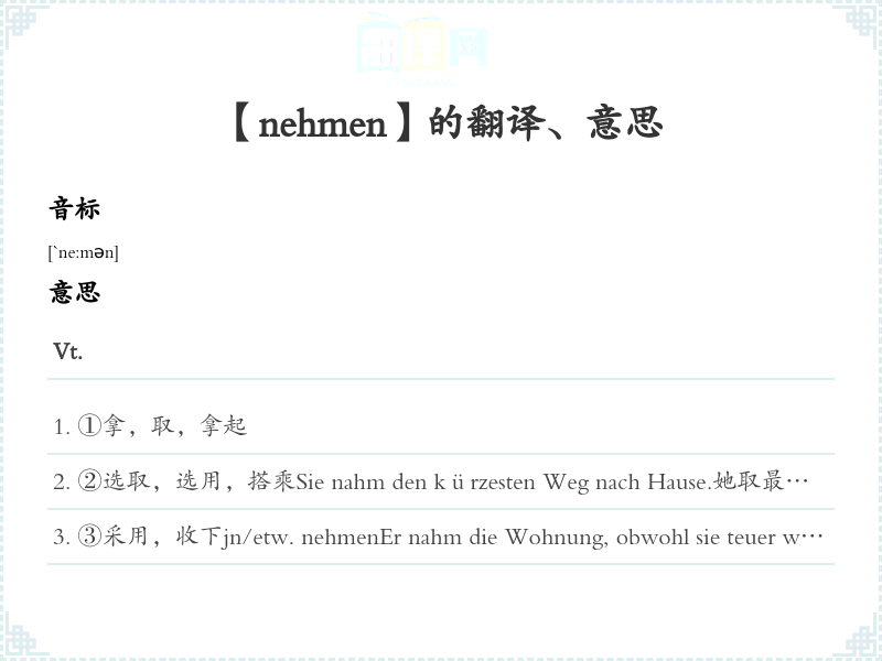 【nehmen】是什么意思、字义解释