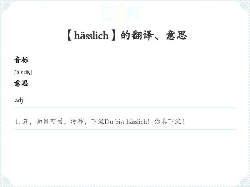 丑,面目可憎,污秽,下流Du bist hässlich!你真下流!