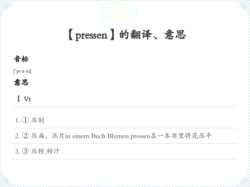 【pressen】是什么意思、字义解释