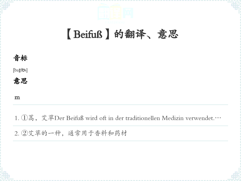 ①蒿,艾草Der Beifuß wird oft in der traditionellen Medizin verwendet.蒿草常用于传统医学。