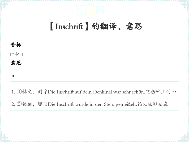 【Inschrift】是什么意思、字义解释