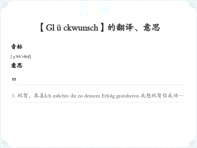 祝贺,恭喜Ich möchte dir zu deinem Erfolg gratulieren.我想祝贺你成功。祝愿Ich wünsche dir alles Gute für die Zukunft.我祝愿你未来一切顺利。