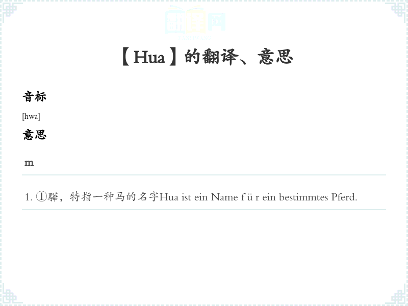 ①驊,特指一种马的名字Hua ist ein Name für ein bestimmtes Pferd.