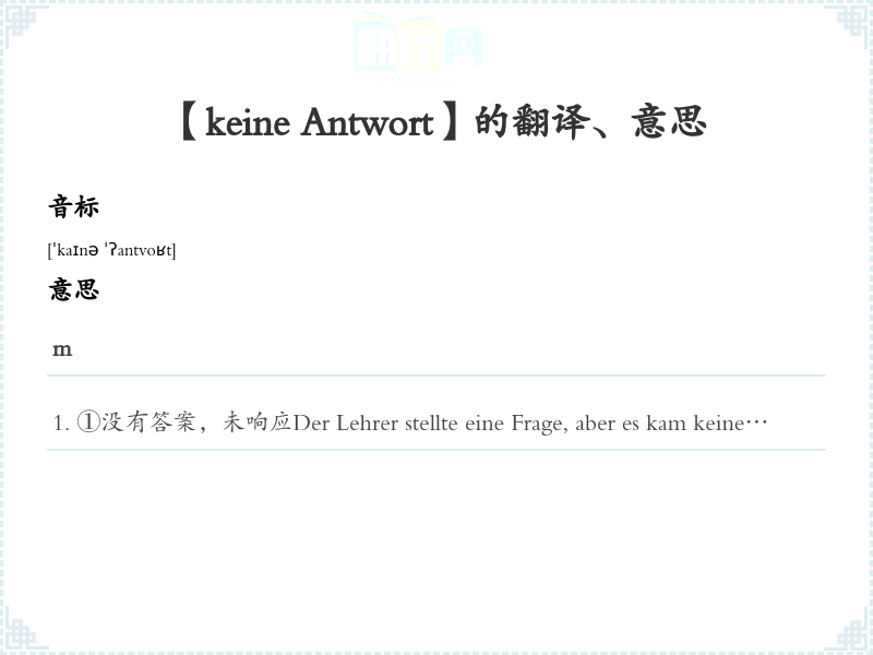 ①没有答案,未响应Der Lehrer stellte eine Frage, aber es kam keine Antwort.老师问了一个问题,但没有得到答案。
