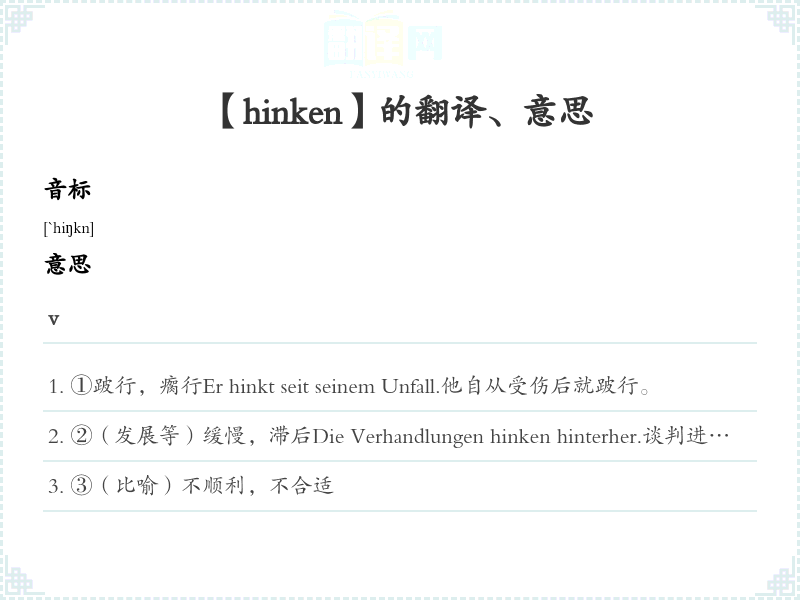 【hinken】是什么意思、字义解释