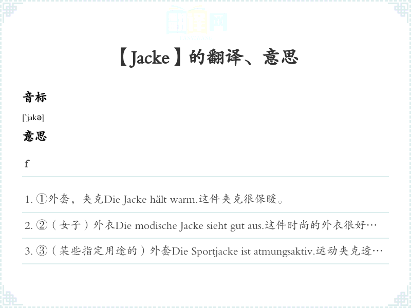 【Jacke】是什么意思、字义解释