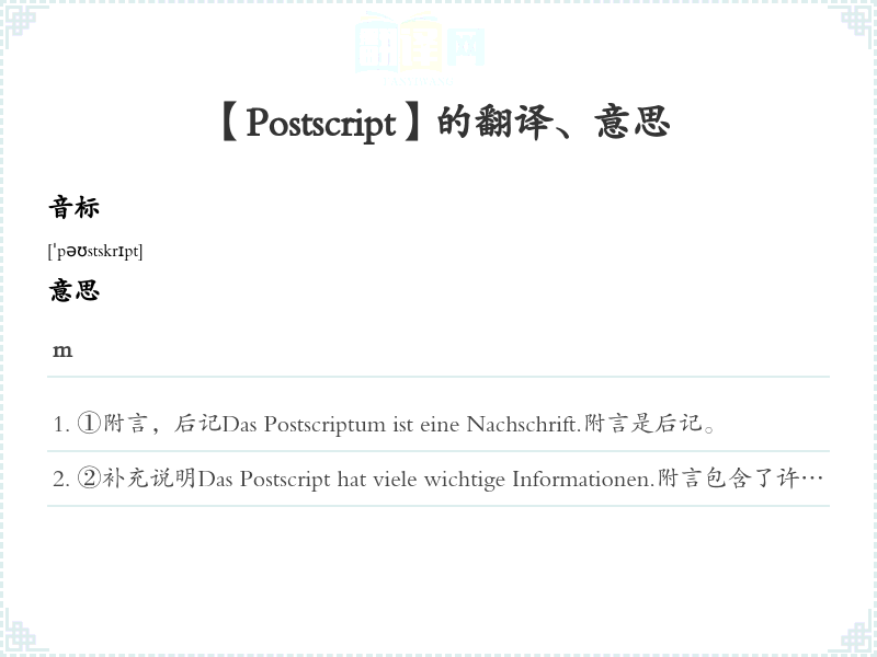 【Postscript】是什么意思、字义解释