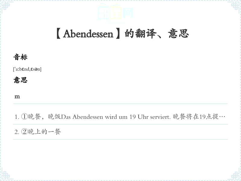 【Abendessen】是什么意思、字义解释