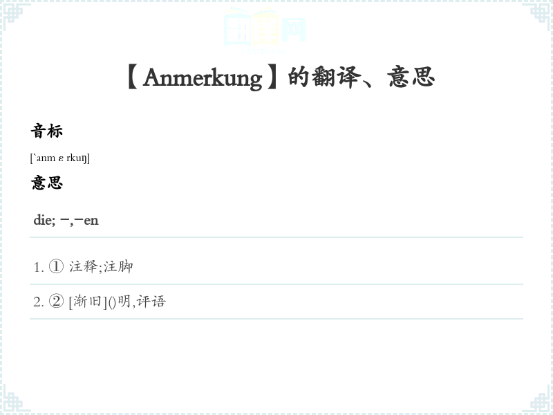 【Anmerkung】是什么意思、字义解释