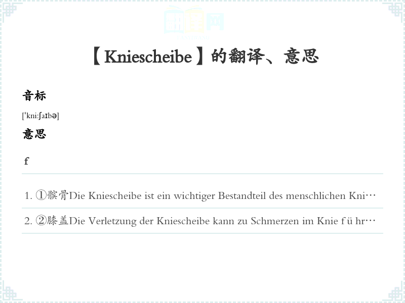 ②膝盖Die Verletzung der Kniescheibe kann zu Schmerzen im Knie führen.髌骨的损伤可能会导致膝盖疼痛。