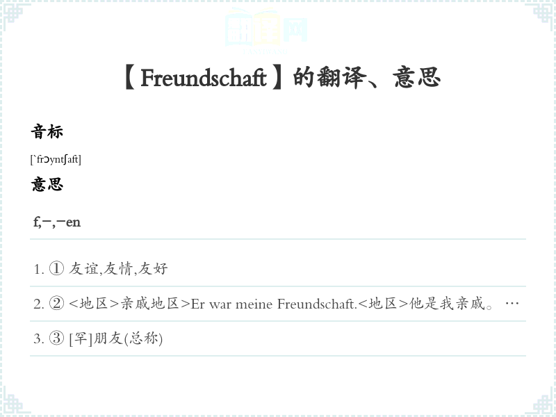 【Freundschaft】是什么意思、字义解释