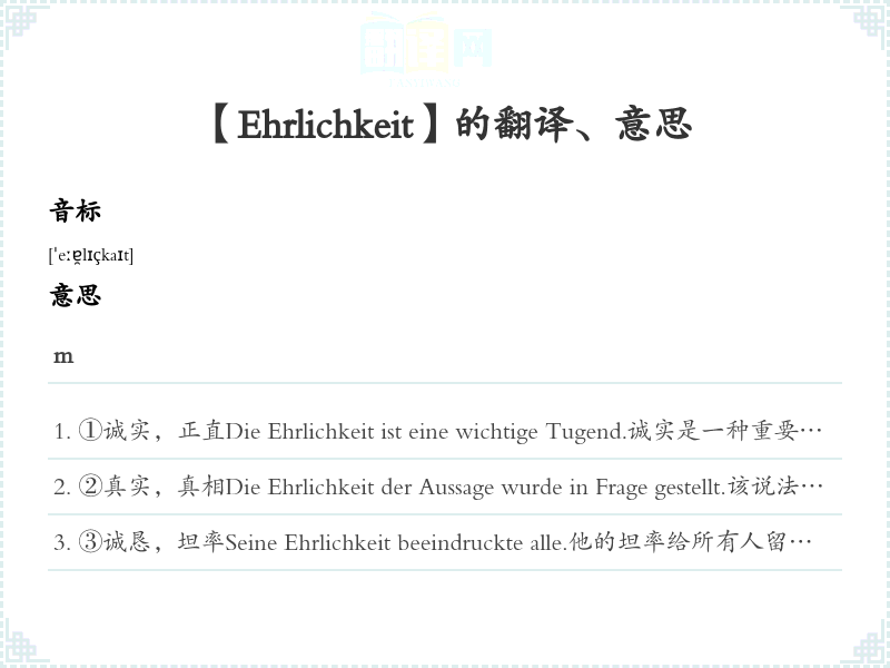 【Ehrlichkeit】是什么意思、字义解释