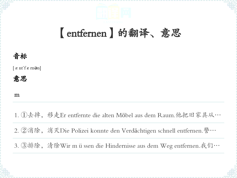 【entfernen】是什么意思、字义解释