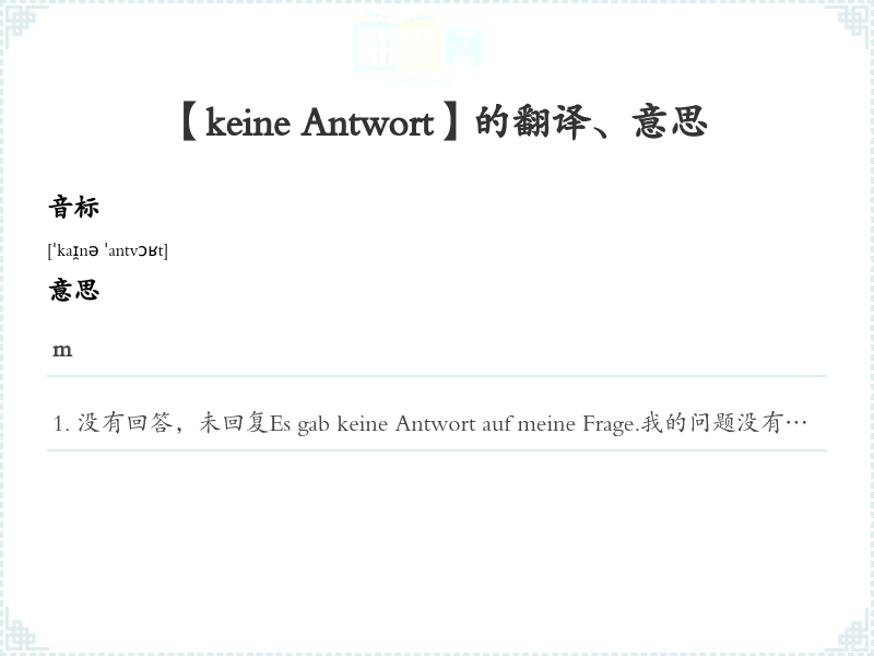 没有回答,未回复Es gab keine Antwort auf meine Frage.我的问题没有得到回答。