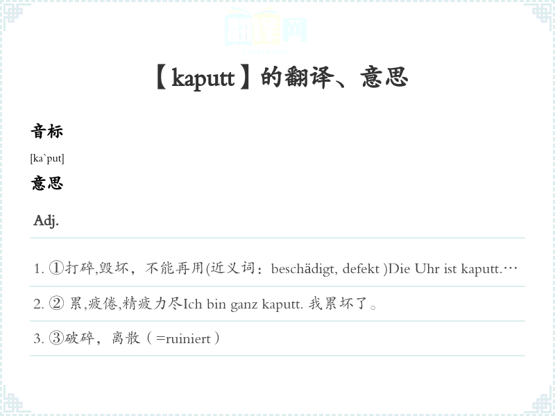 【kaputt】是什么意思、字义解释