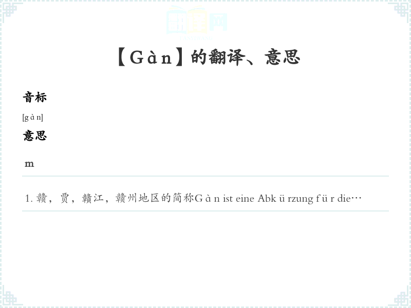 赣,贾,贛江,赣州地区的简称Gàn ist eine Abkürzung für die Region um den Gan-Fluss, darunter auch die Stadt Ganzhou.