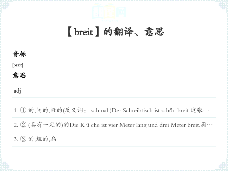 【breit】 近义词:、 反义词: 联想词