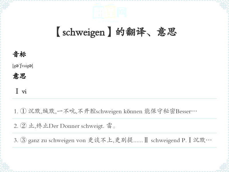 【schweigen】是什么意思、字义解释