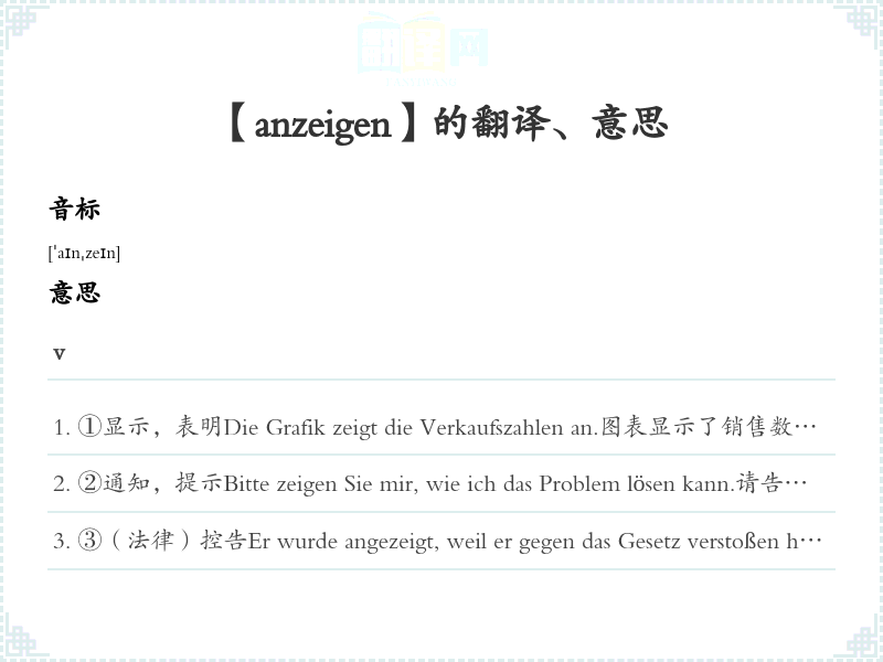 【anzeigen】是什么意思、字义解释