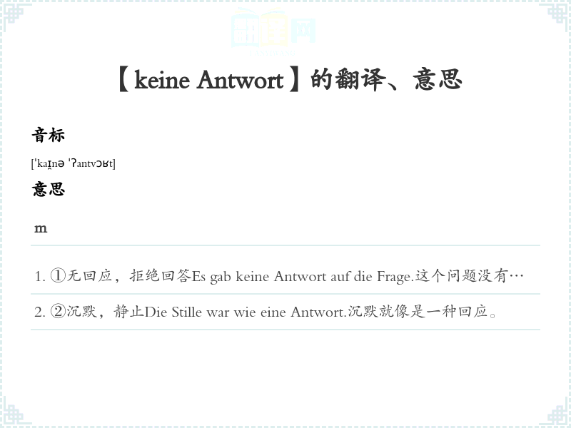 【keine Antwort】是什么意思、字义解释
