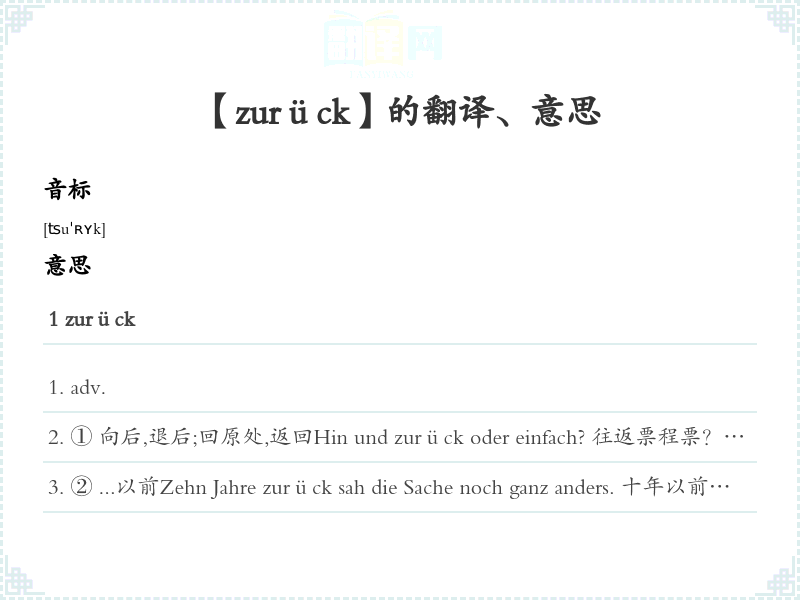 【zurück】是什么意思、字义解释