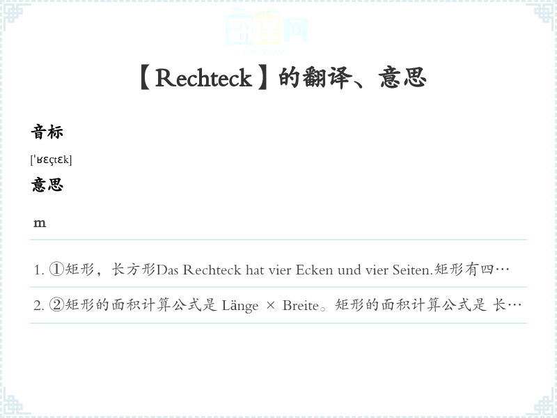 【Rechteck】是什么意思、字义解释