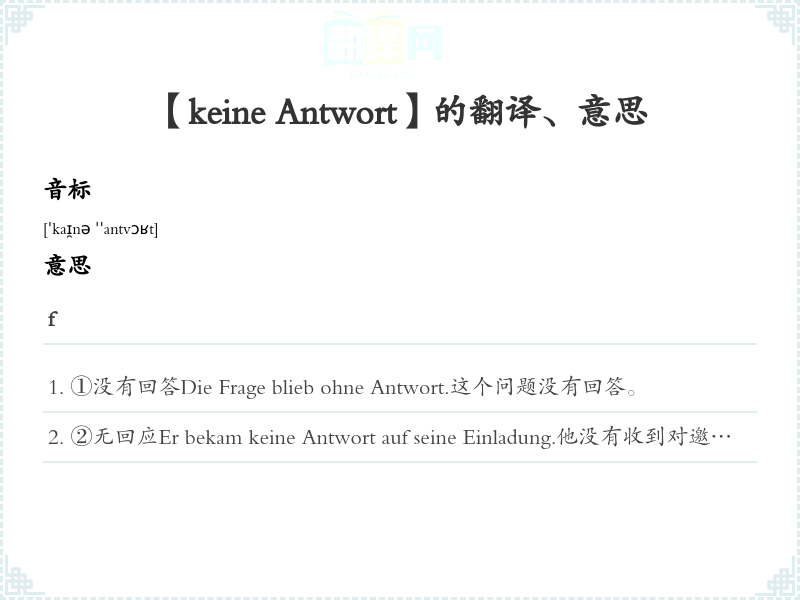 【keine Antwort】是什么意思、字义解释