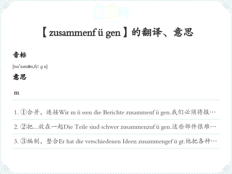 ①合并,连接Wir müssen die Berichte zusammenfügen.我们必须将报告合并。