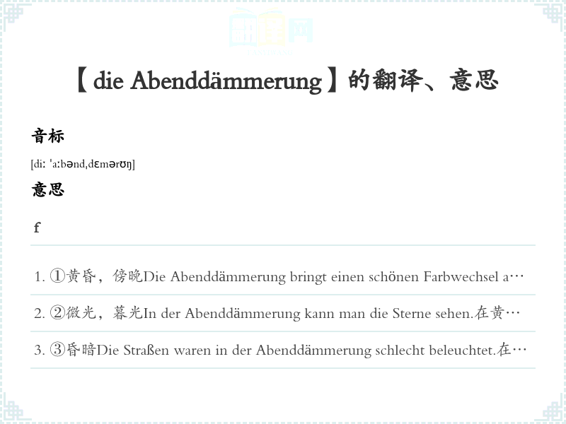 【die Abenddämmerung】是什么意思、字义解释