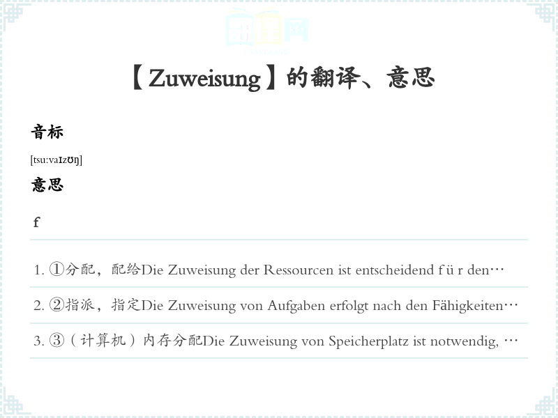 【Zuweisung】是什么意思、字义解释