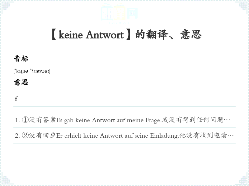 【keine Antwort】是什么意思、字义解释