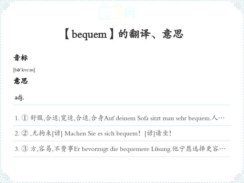 【bequem】是什么意思、字义解释