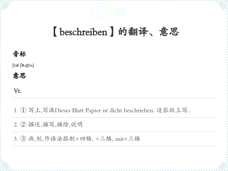 【beschreiben】是什么意思、字义解释