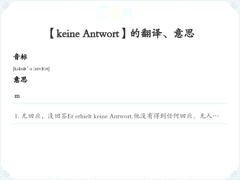 【keine Antwort】是什么意思、字义解释