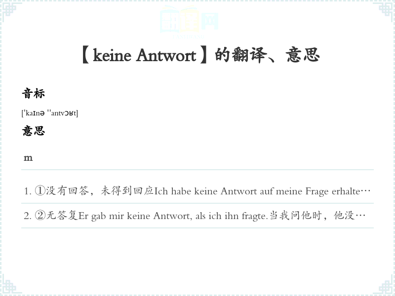 【keine Antwort】是什么意思、字义解释