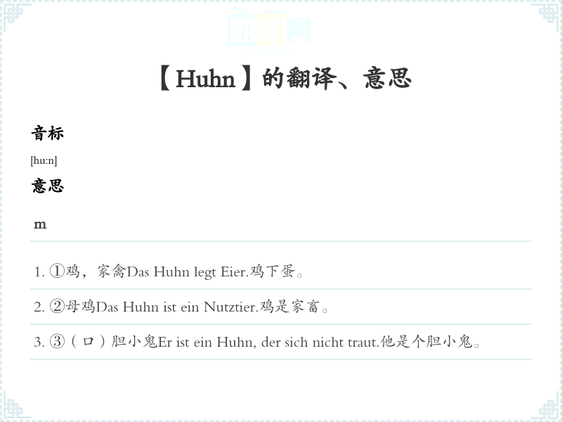 【Huhn】是什么意思、字义解释