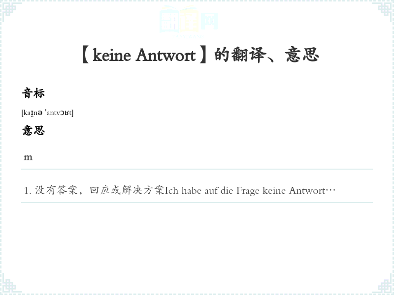 没有答案,回应或解决方案Ich habe auf die Frage keine Antwort bekommen.我没有得到这个问题的答案。