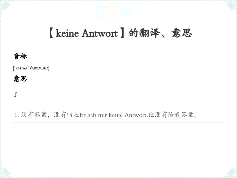 【keine Antwort】是什么意思、字义解释