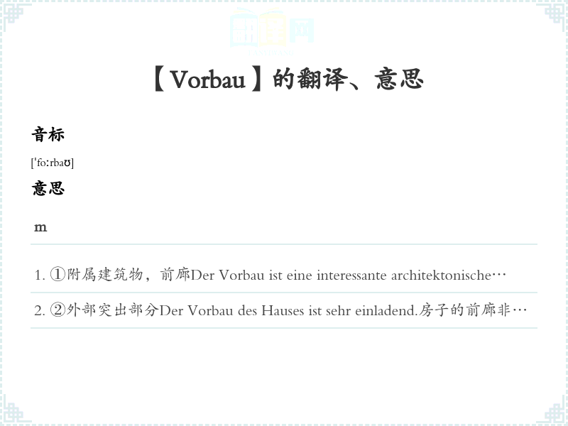 【Vorbau】是什么意思、字义解释