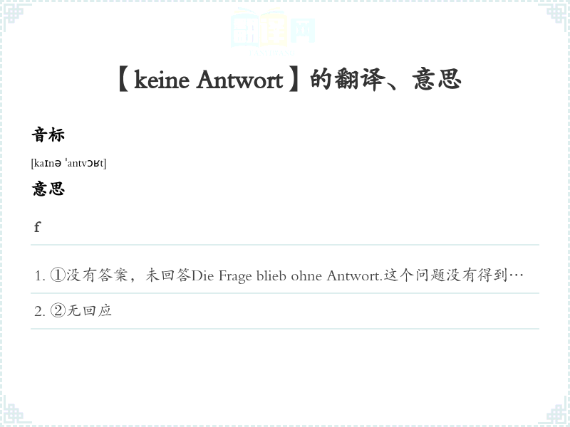 【keine Antwort】是什么意思、字义解释