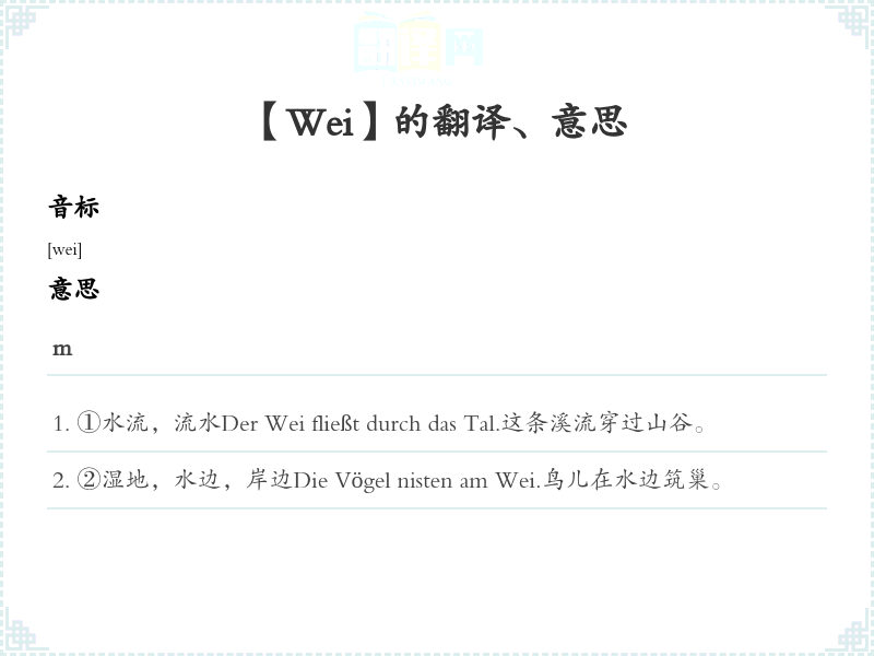 ①水流,流水Der Wei fließt durch das Tal.这条溪流穿过山谷。