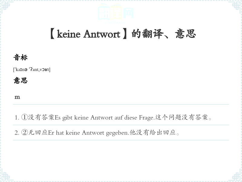 【keine Antwort】是什么意思、字义解释