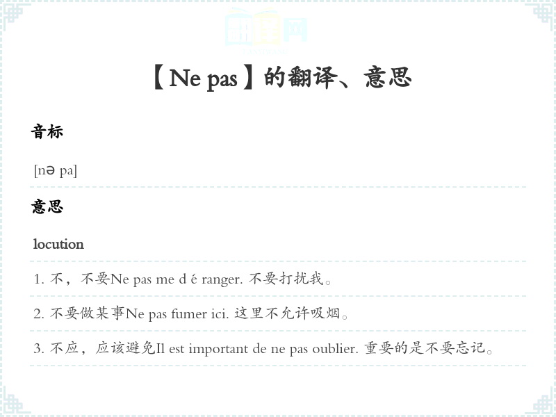 【Ne pas】是什么意思、字义解释