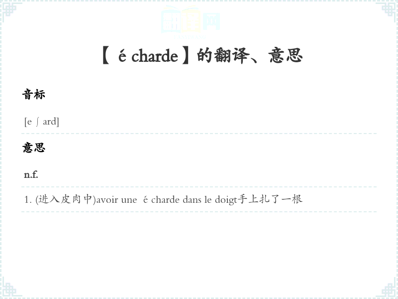 (进入皮肉中)avoir une écharde dans le doigt手上扎了一根